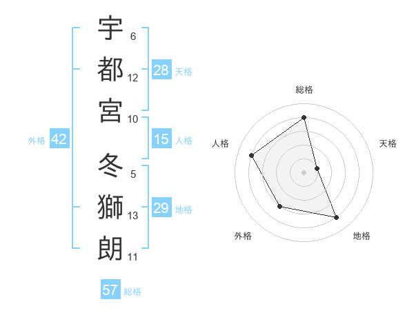 宇都宮 冬獅朗さんの総格は57画の4点!