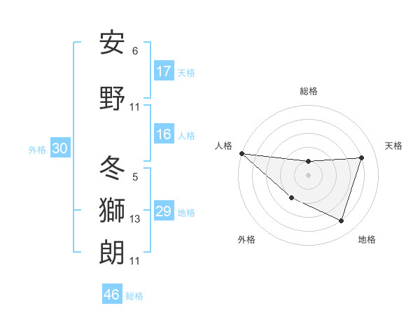 安野 冬獅朗さんの天格は17画の4点!