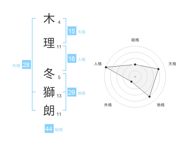 木理 冬獅朗さんを姓名の画数から五運を鑑定