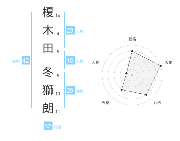 榎木田 冬獅朗さんの総格は52画の4点!