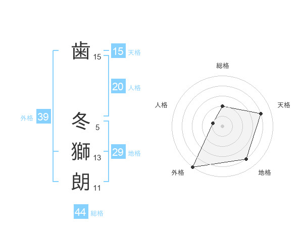 歯 冬獅朗さんの外格は39画の5点!