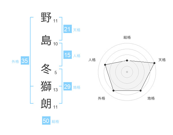 野島 冬獅朗さんの天格は21画の5点!