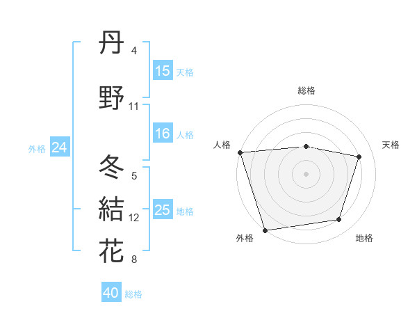 丹野 冬結花さんの外格は24画の5点!