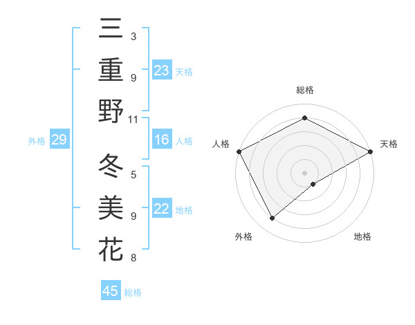 三重野 冬美花さんを姓名の画数から五運を鑑定