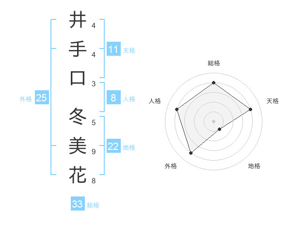 井手口 冬美花さんを姓名の画数から五運を鑑定