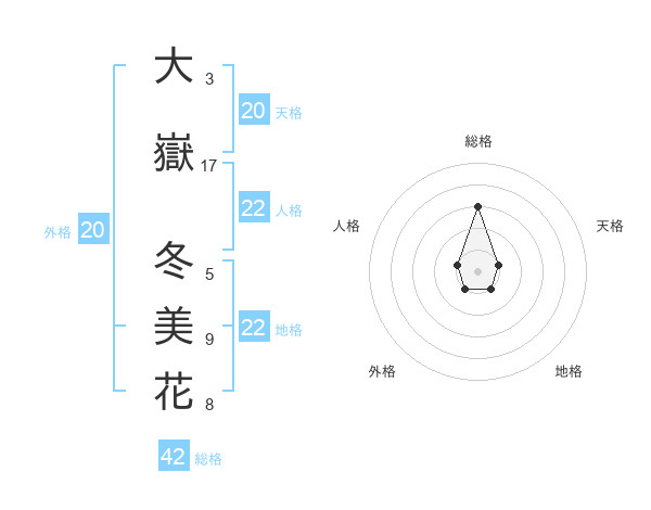 大嶽 冬美花さんを姓名の画数から五運を鑑定