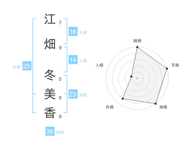 江畑 冬美香さんを姓名の画数から五運を鑑定