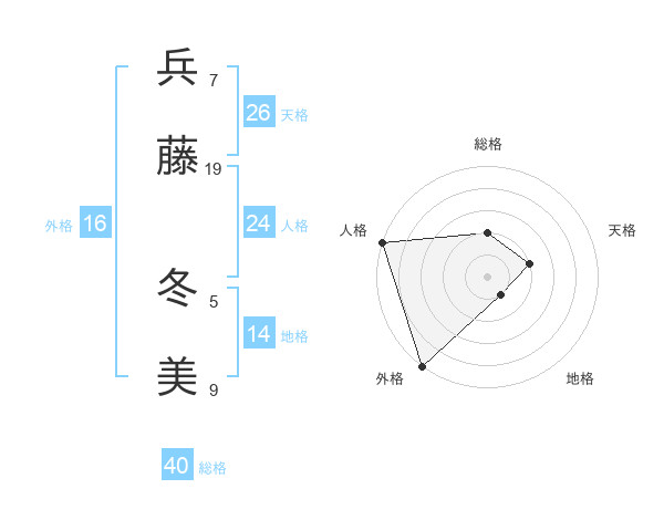兵藤 冬美さんの外格は16画の5点!