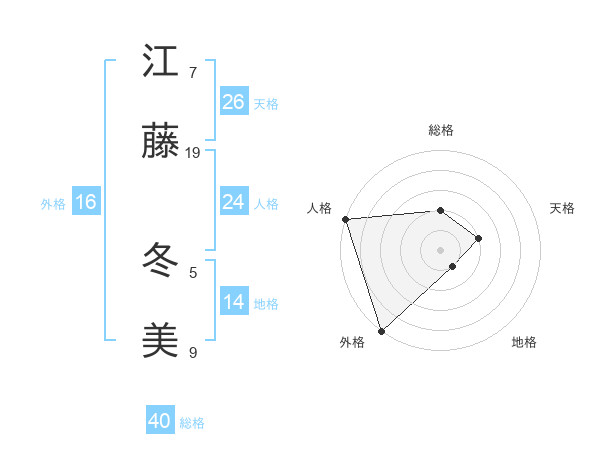 江藤 冬美さんを姓名の画数から五運を鑑定