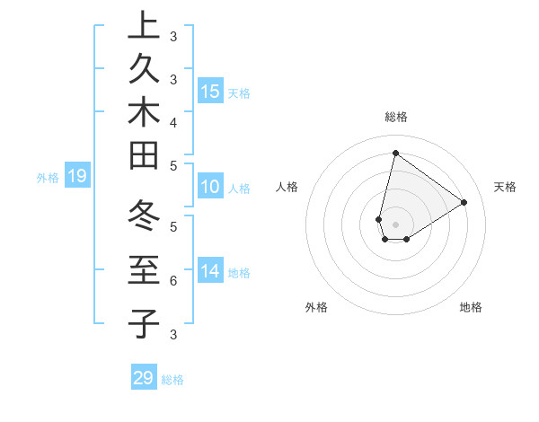 上久木田 冬至子さんを姓名の画数から五運を鑑定