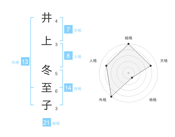 井上 冬至子さんを姓名の画数から五運を鑑定