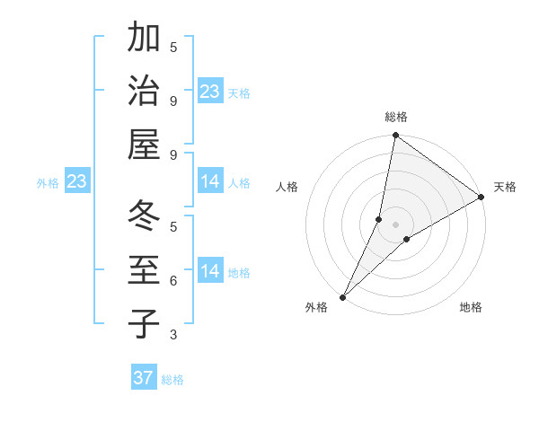 加治屋 冬至子さんの天格は23画の5点