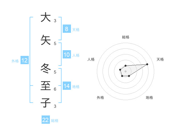 大矢 冬至子さんを姓名の画数から五運を鑑定