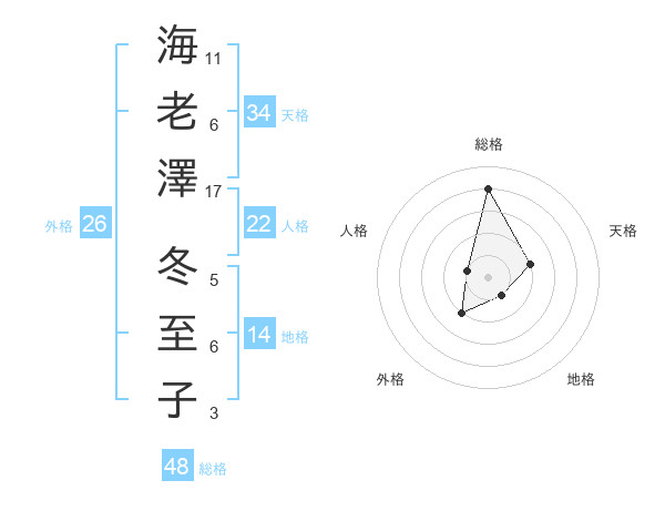 海老澤 冬至子さんを姓名の画数から五運を鑑定