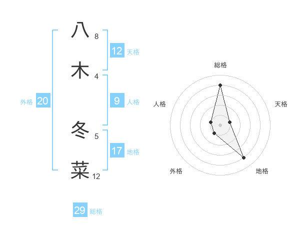 八木 冬菜さんを姓名の画数から五運を鑑定