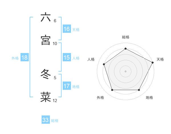 六宮 冬菜さんの総格は33画の4点!