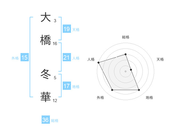 大橋 冬華さんの天格は19画の1点!