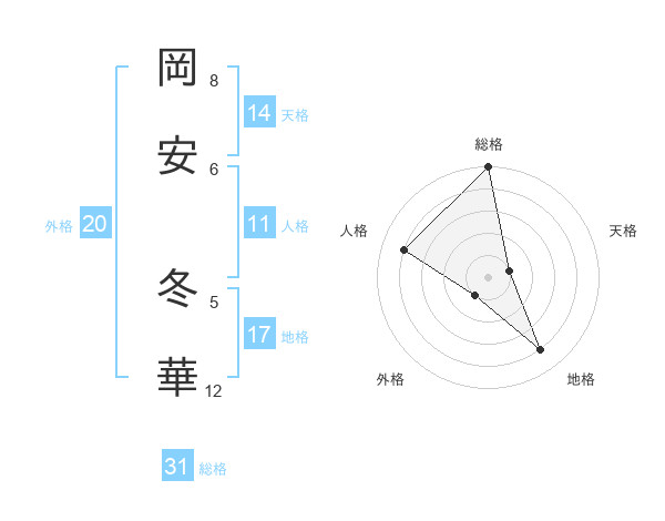 岡安 冬華さんの総格は31画の5点!