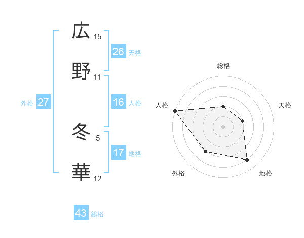 広野 冬華さんの総格は43画の2点!