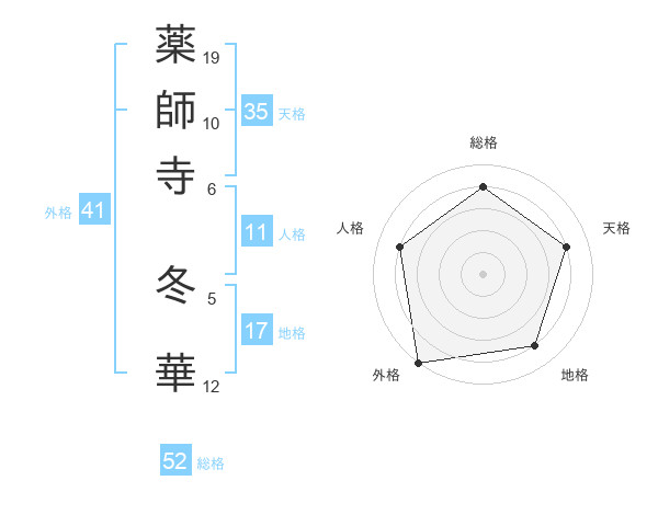 薬師寺 冬華さんの総格は52画の4点!