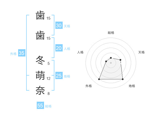 歯歯 冬萌奈さんを姓名の画数から五運を鑑定