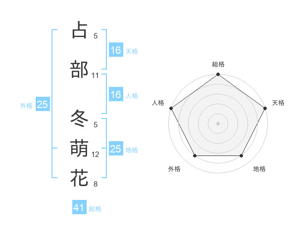 占部 冬萌花さんを姓名の画数から五運を鑑定