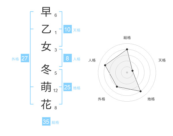 早乙女 冬萌花さんを姓名の画数から五運を鑑定