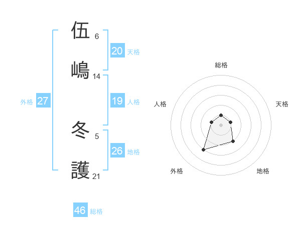 伍嶋 冬護さんを姓名の画数から五運を鑑定