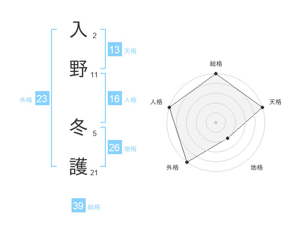 入野 冬護さんの総格は39画の5点!