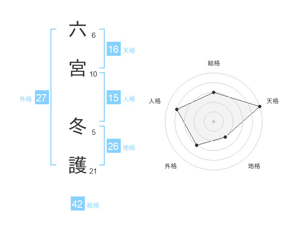 六宮 冬護さんの総格は42画の3点!