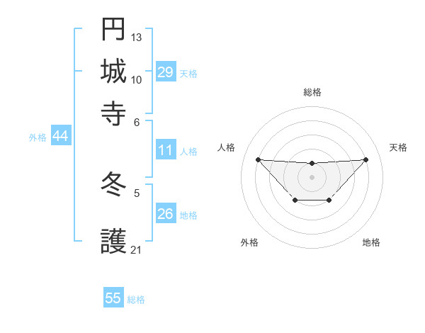 円城寺 冬護さんの総格は55画の1点!