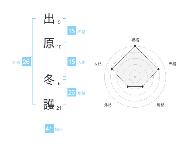 出原 冬護さんの総格は41画の5点!
