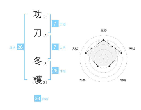 功刀 冬護さんを姓名の画数から五運を鑑定