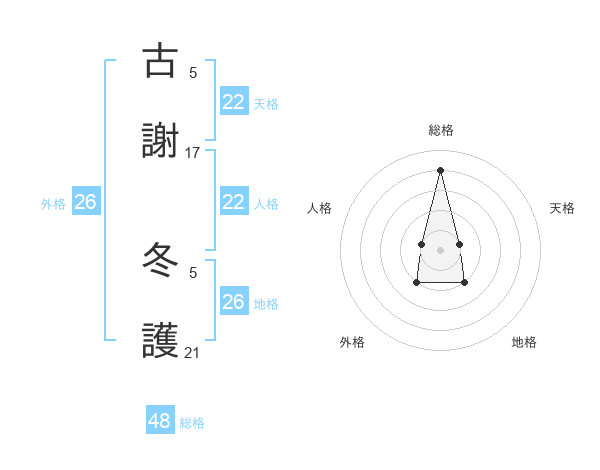 古謝 冬護さんを姓名の画数から五運を鑑定