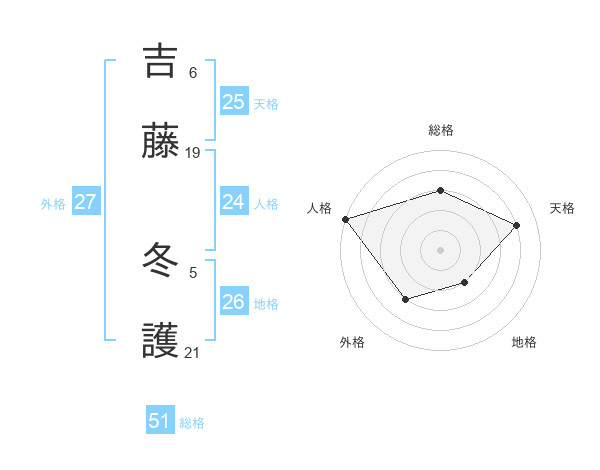 吉藤 冬護さんの総格は51画の3点!