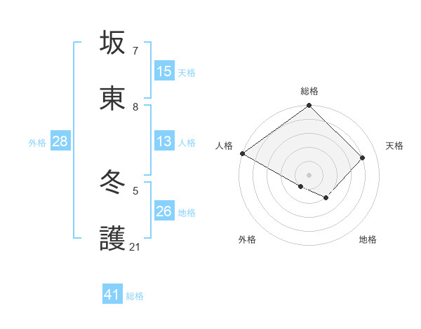 坂東 冬護さんを姓名の画数から五運を鑑定