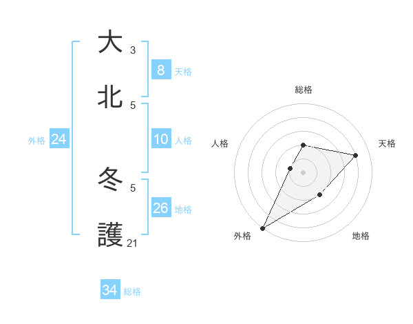 大北 冬護さんの外格は24画の5点!