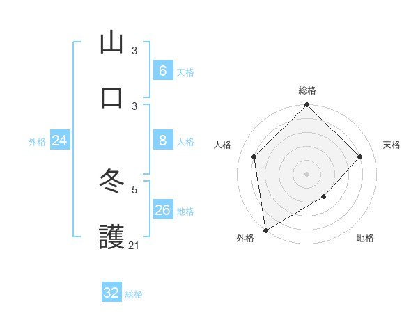 山口 冬護さんの総格は32画の5点!