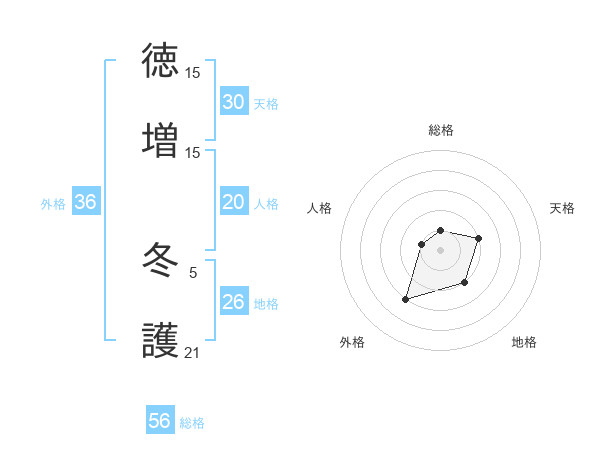 徳増 冬護さんの総格は56画の1点!