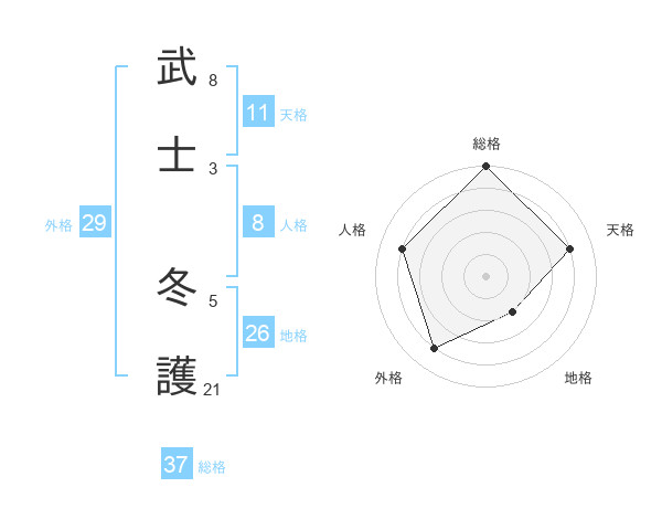 武士 冬護さんの総格は37画の5点!
