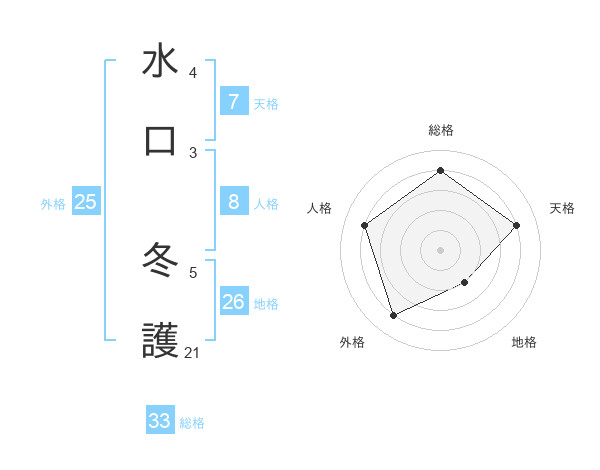 水口 冬護さんの総格は33画の4点!