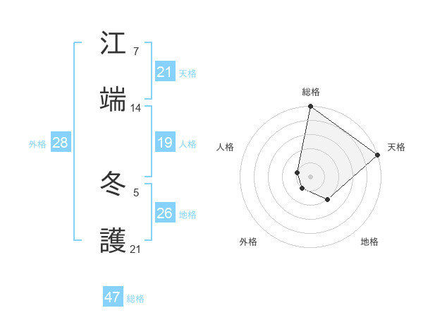 江端 冬護さんの総格は47画の5点!