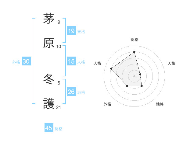 茅原 冬護さんの総格は45画の4点!