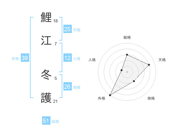 鯉江 冬護さんの総格は51画の3点!