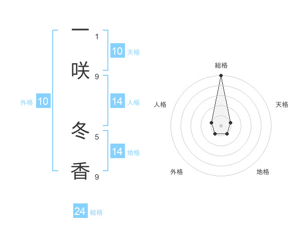 一咲 冬香さんの総格は24画の5点!