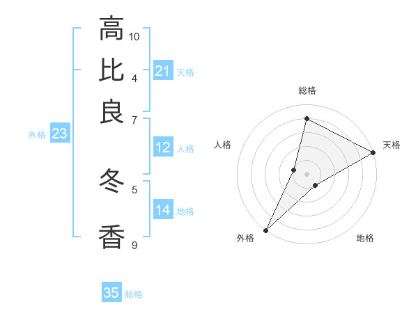 高比良 冬香さんを姓名の画数から五運を鑑定