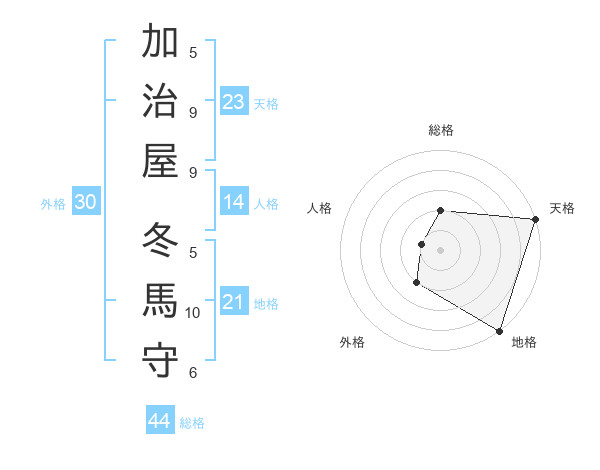 加治屋 冬馬守さんを姓名の画数から五運を鑑定