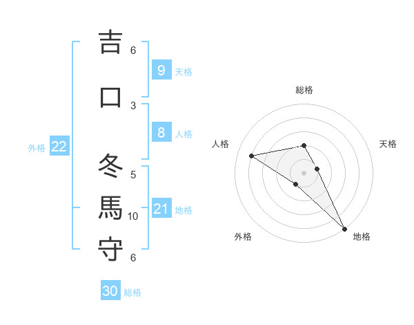 吉口 冬馬守さんの総格は30画の2点!