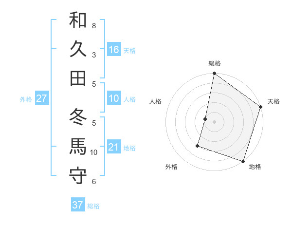 和久田 冬馬守さんを姓名の画数から五運を鑑定