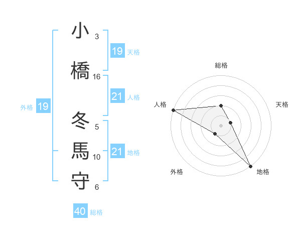 小橋 冬馬守さんを姓名の画数から五運を鑑定